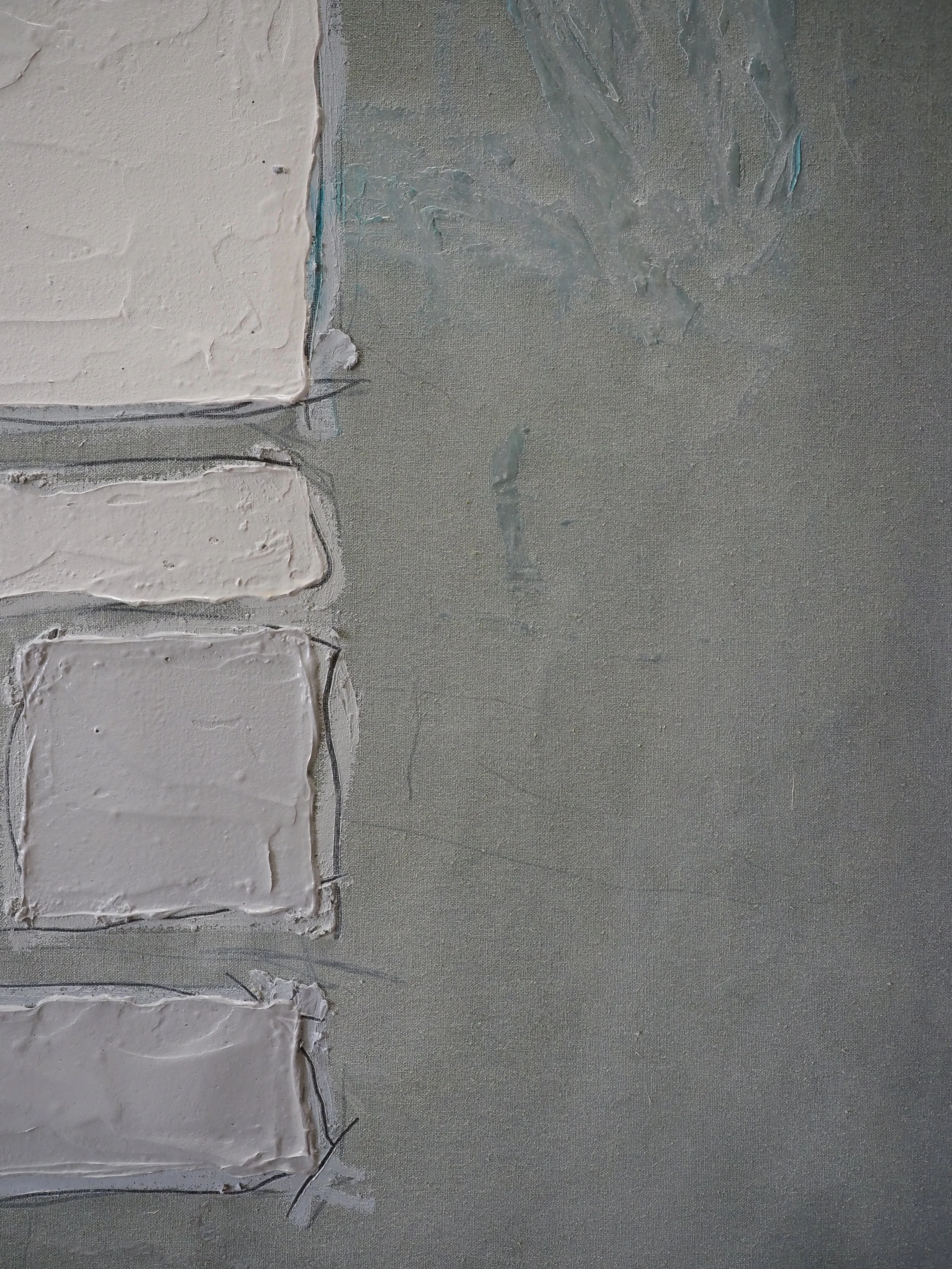 Acrylic, house paint, leather paint, coffee, whiskey, pastel, oil stick, pencil on linen applied to wood