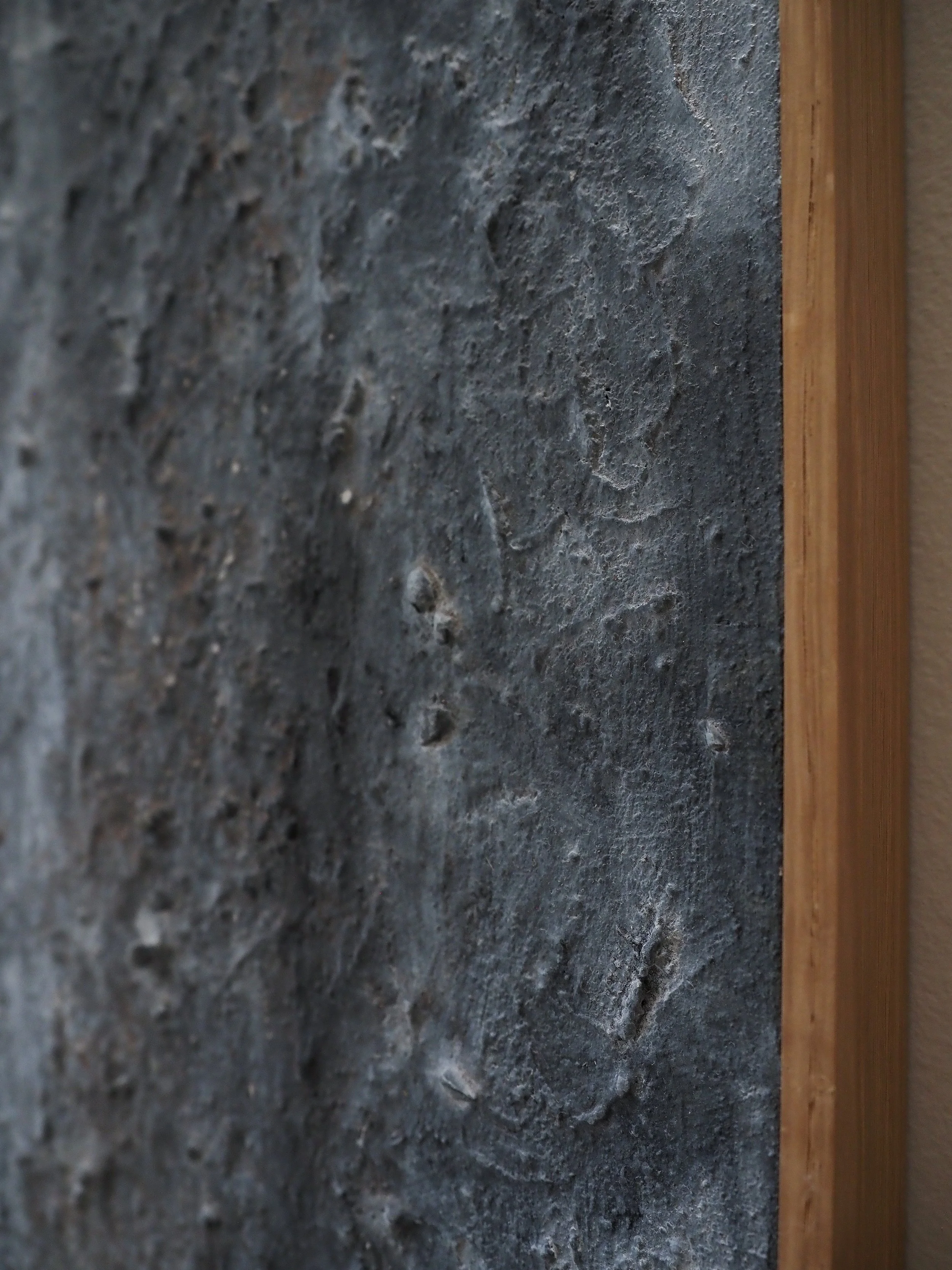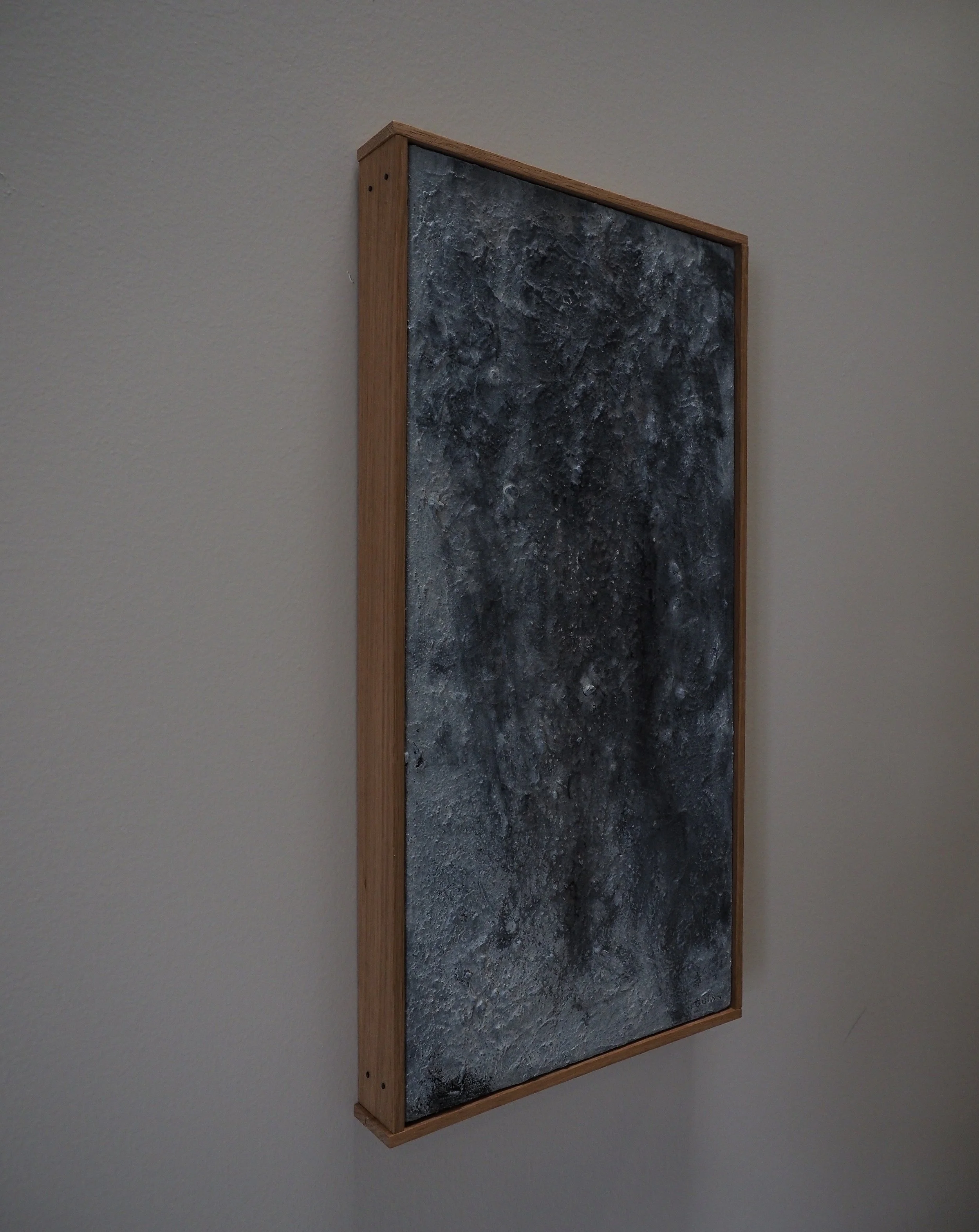 Acrylic, charcoal, ash, pigment, soil on canvas applied to wood