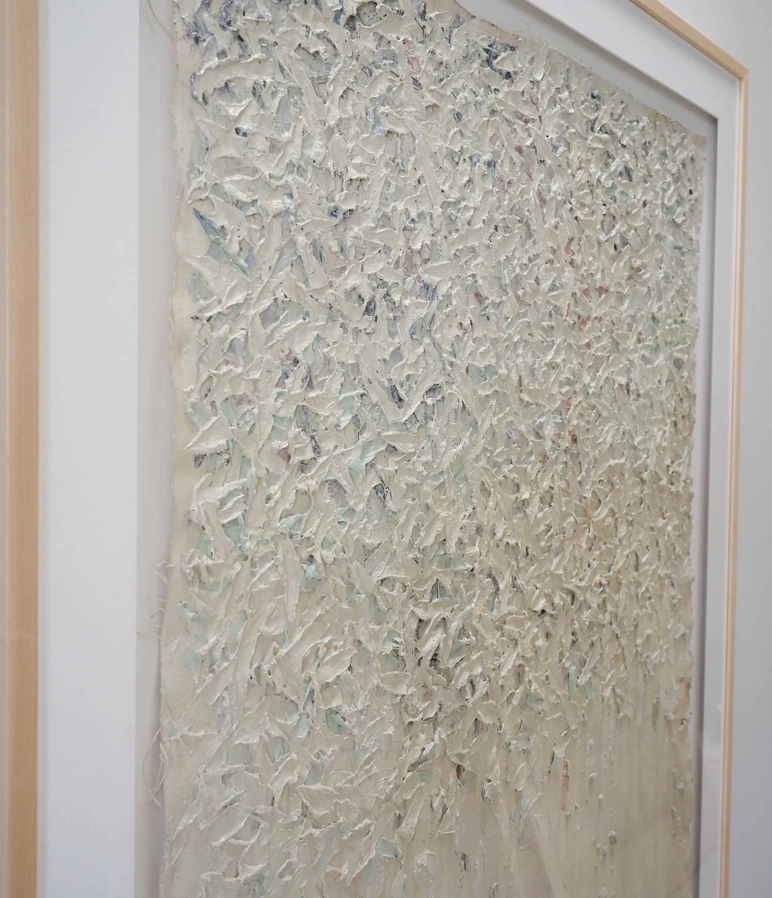 Acrylic, leather paint, house paint, grout, coffee, pastel, pencil, soil on canvas