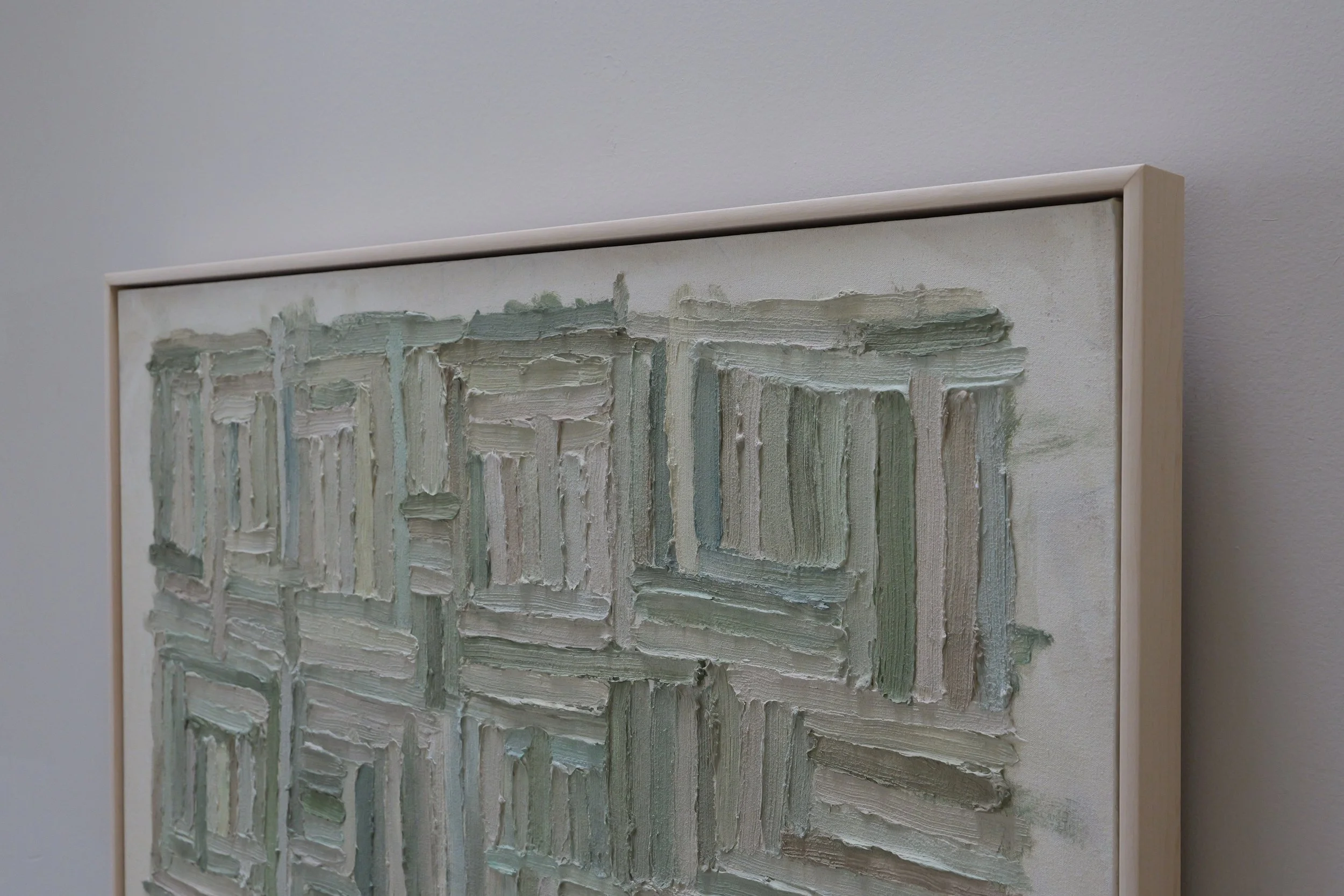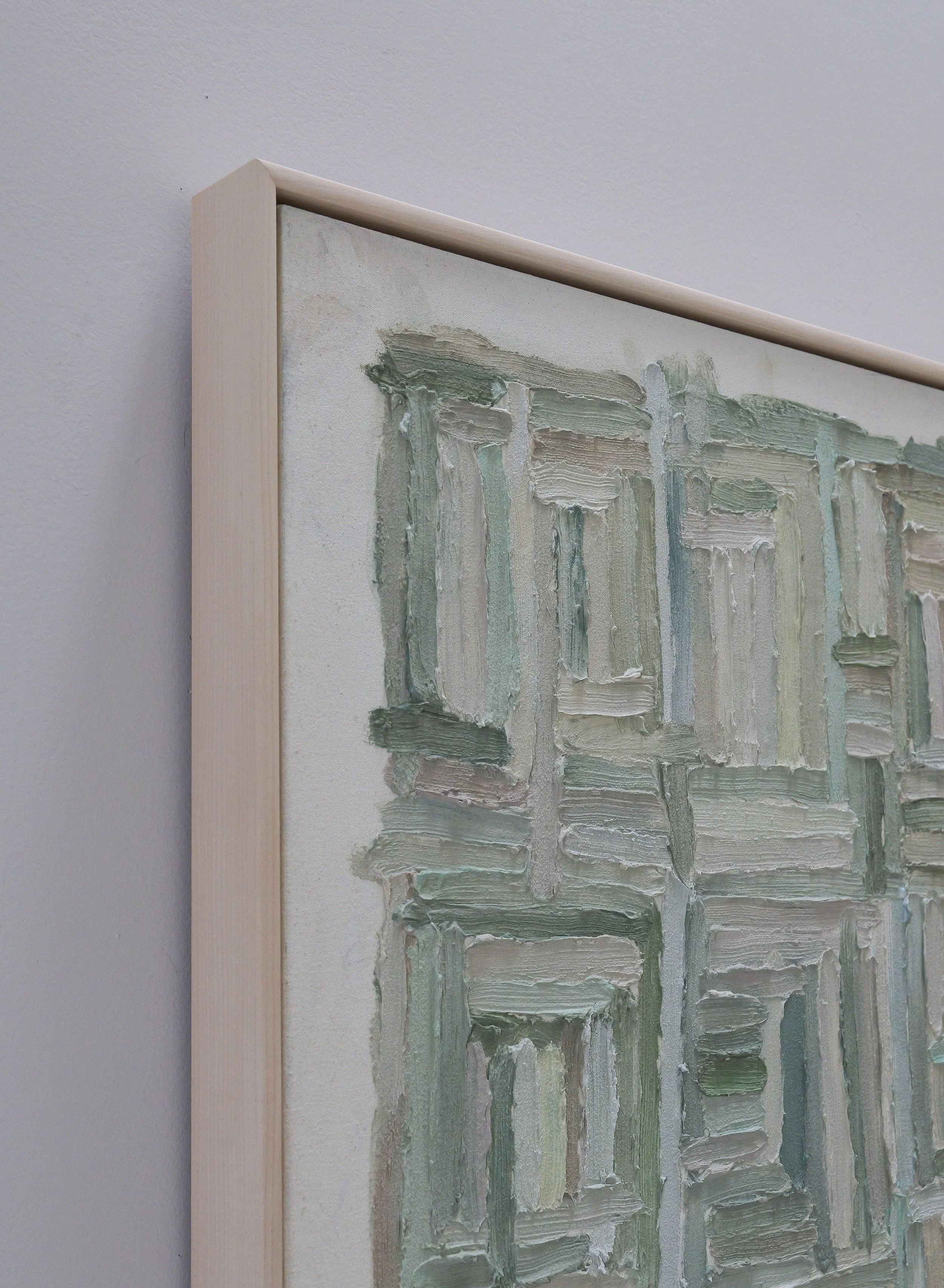House paint, leather paint, oil, grout, soil, paste on canvas applied to wood