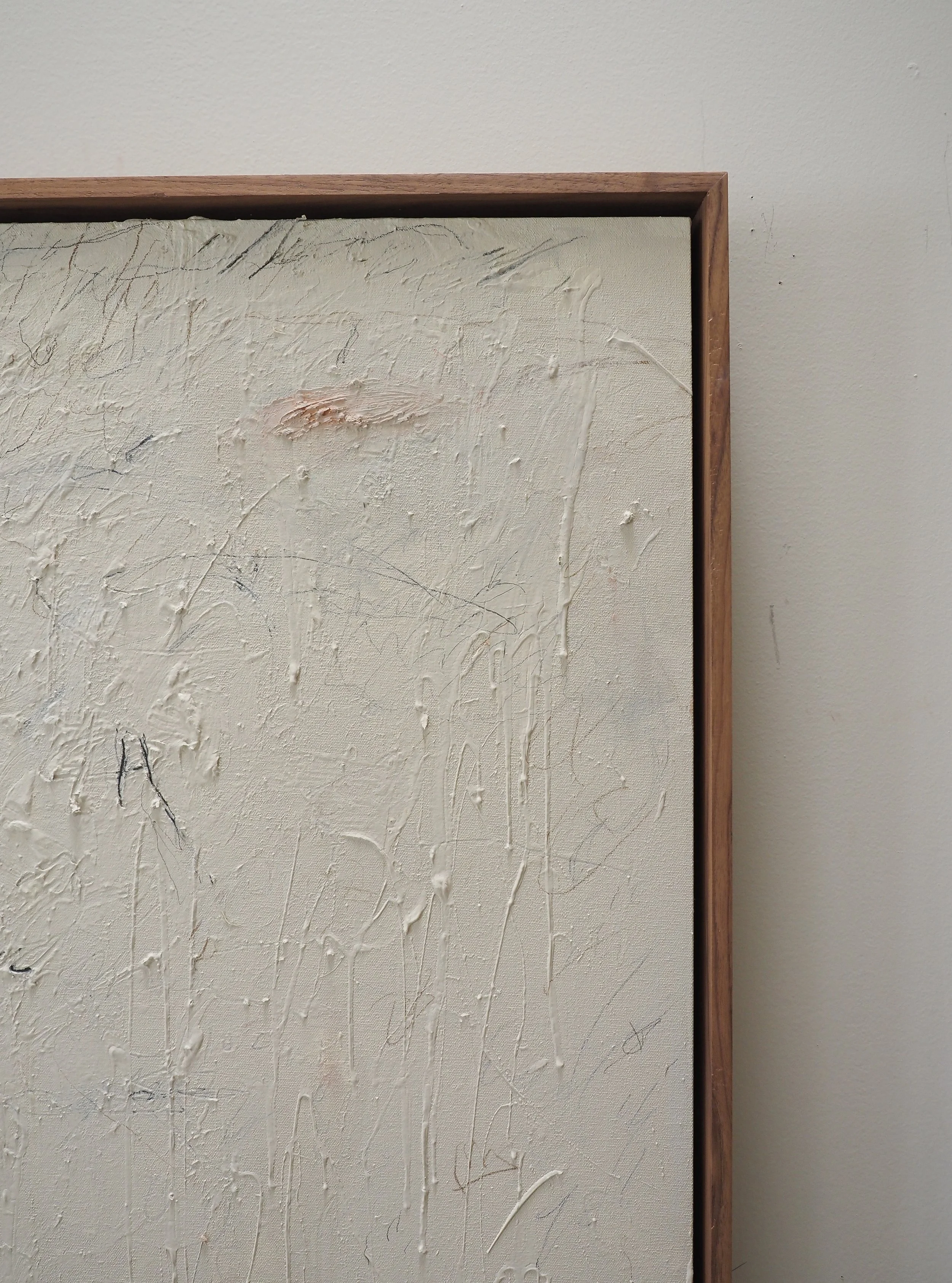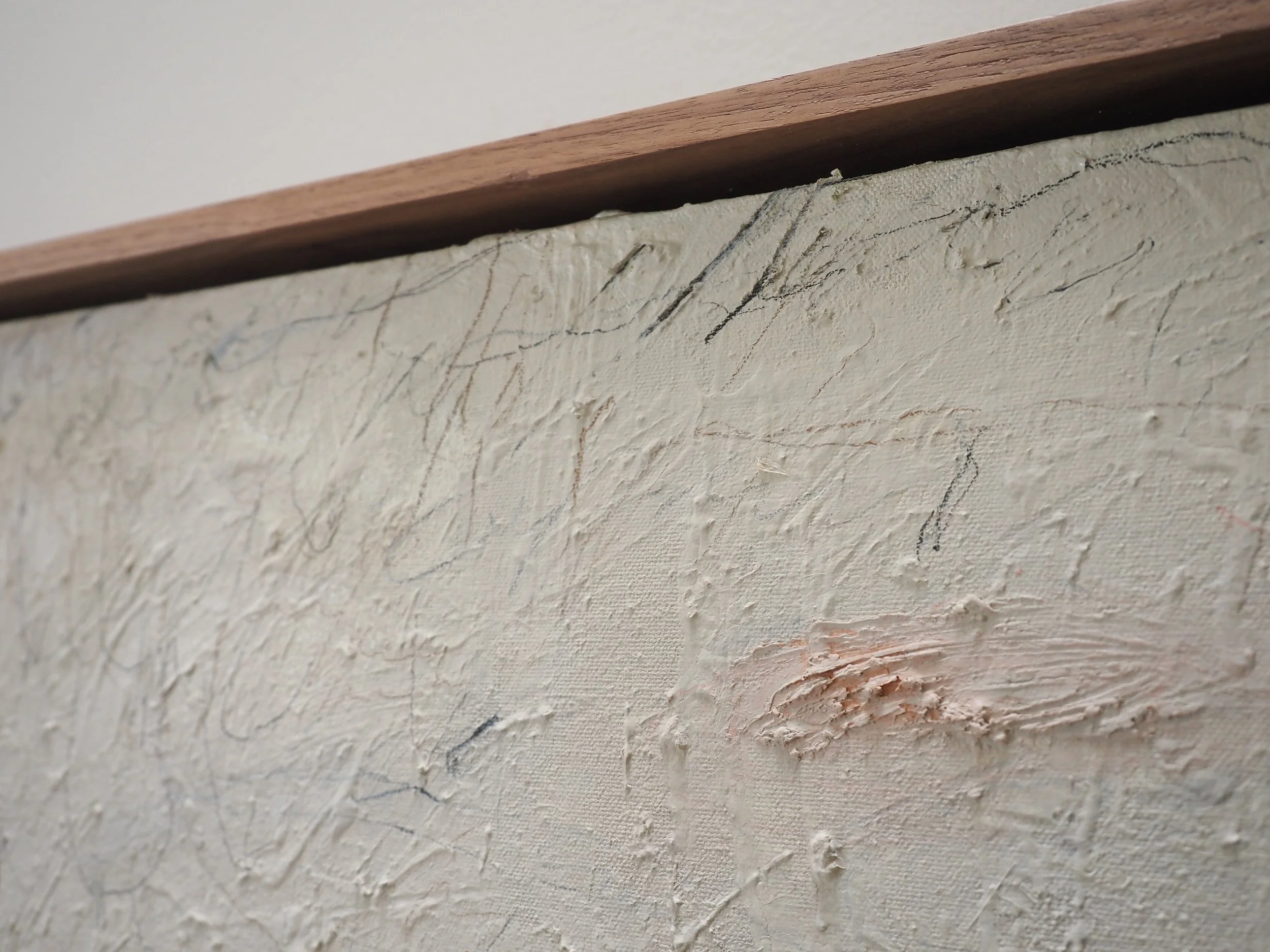 House paint, leather paint, pastel, pencil, charcoal, chablis on canvas applied to wood