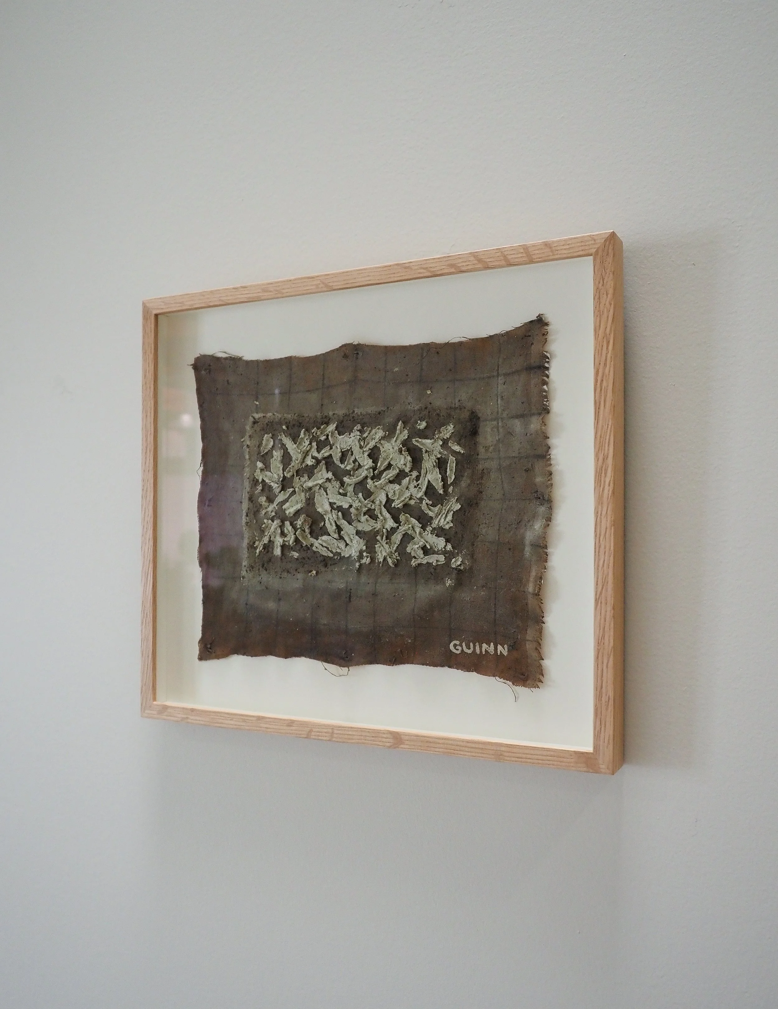 House paint, oil, leather paint, river water, soil, pencil on linen