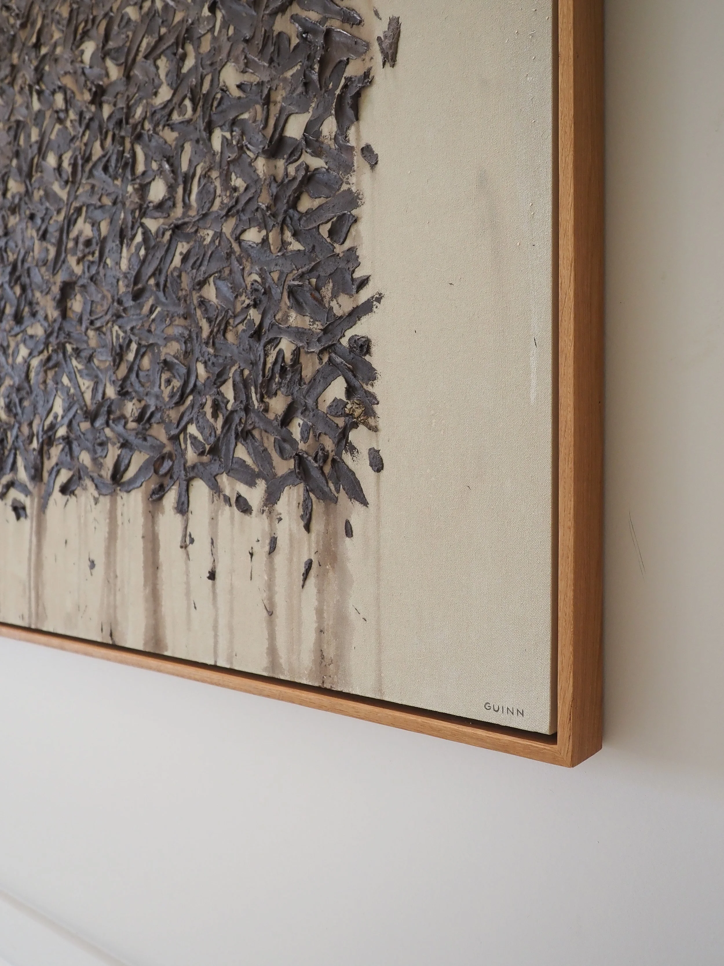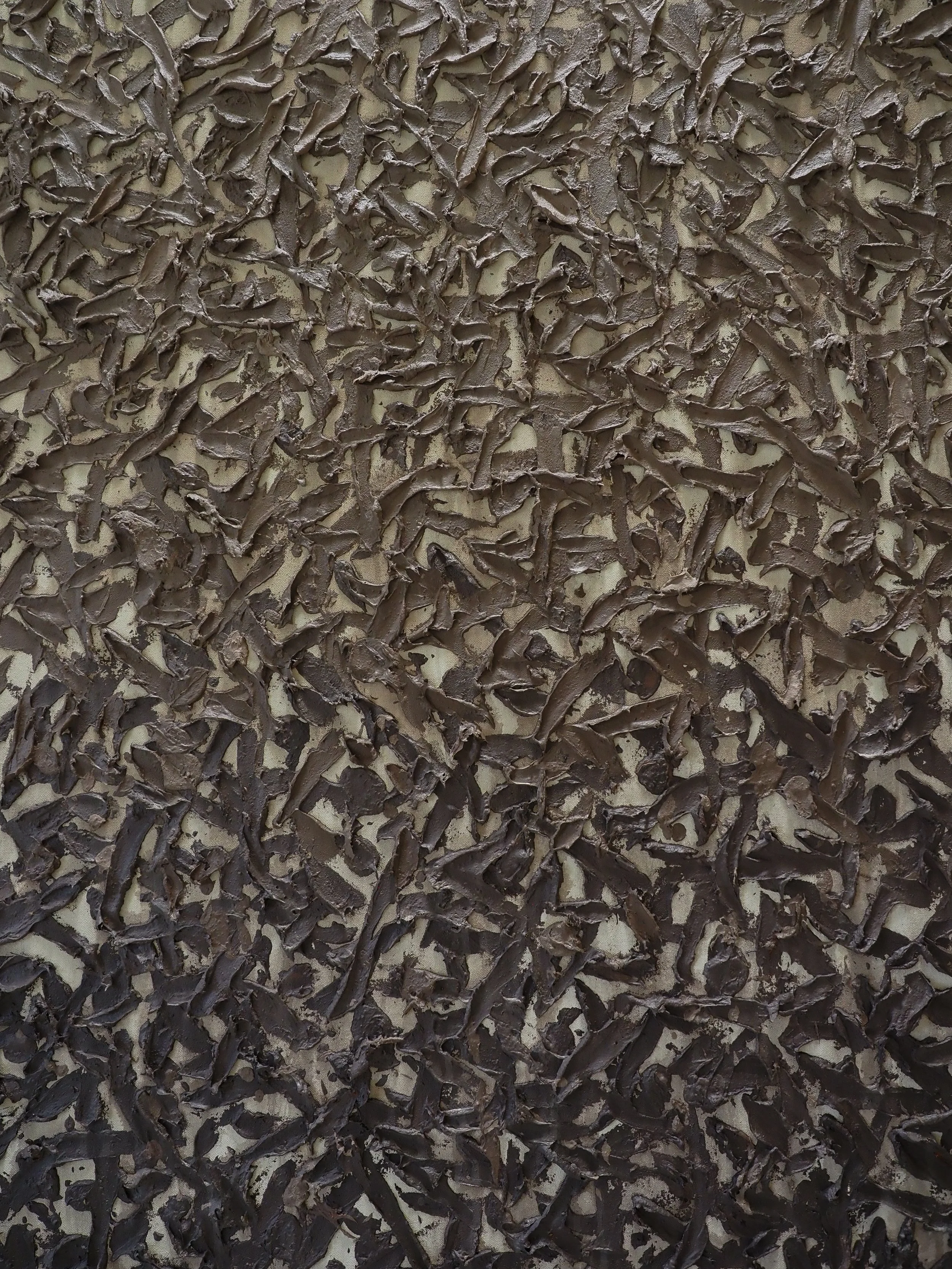 Acrylic, leather paint, house paint, grout, chablis, pinot noir, soil on canvas applied to wood