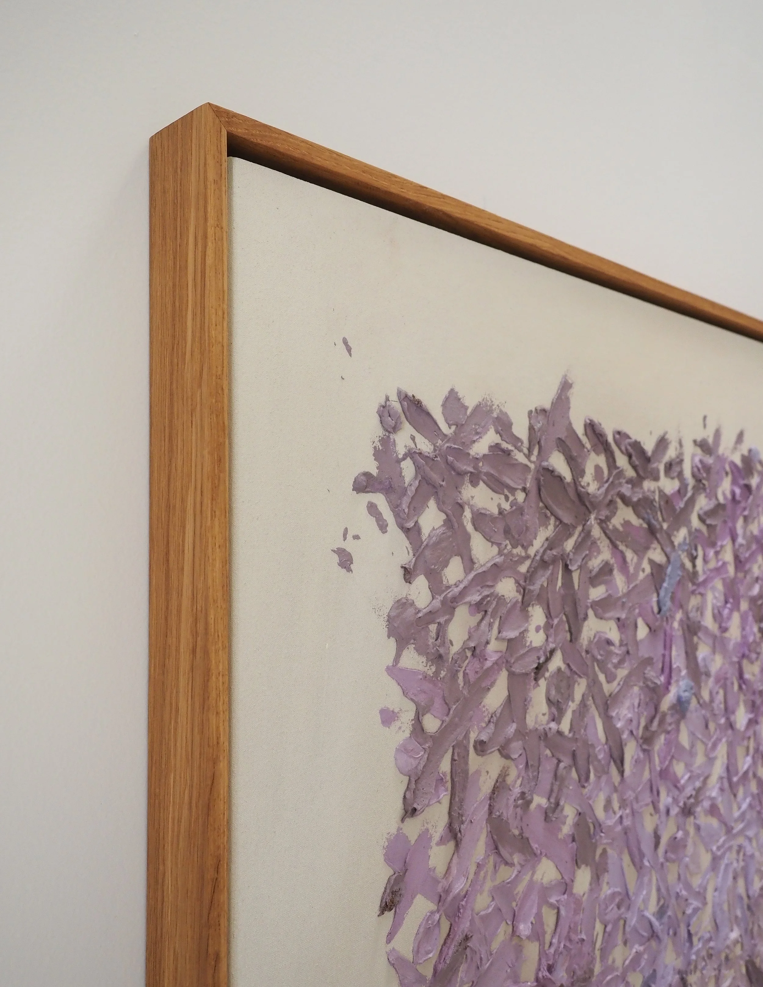 Acrylic, leather paint, house paint, grout, coffee, soil on canvas applied to wood