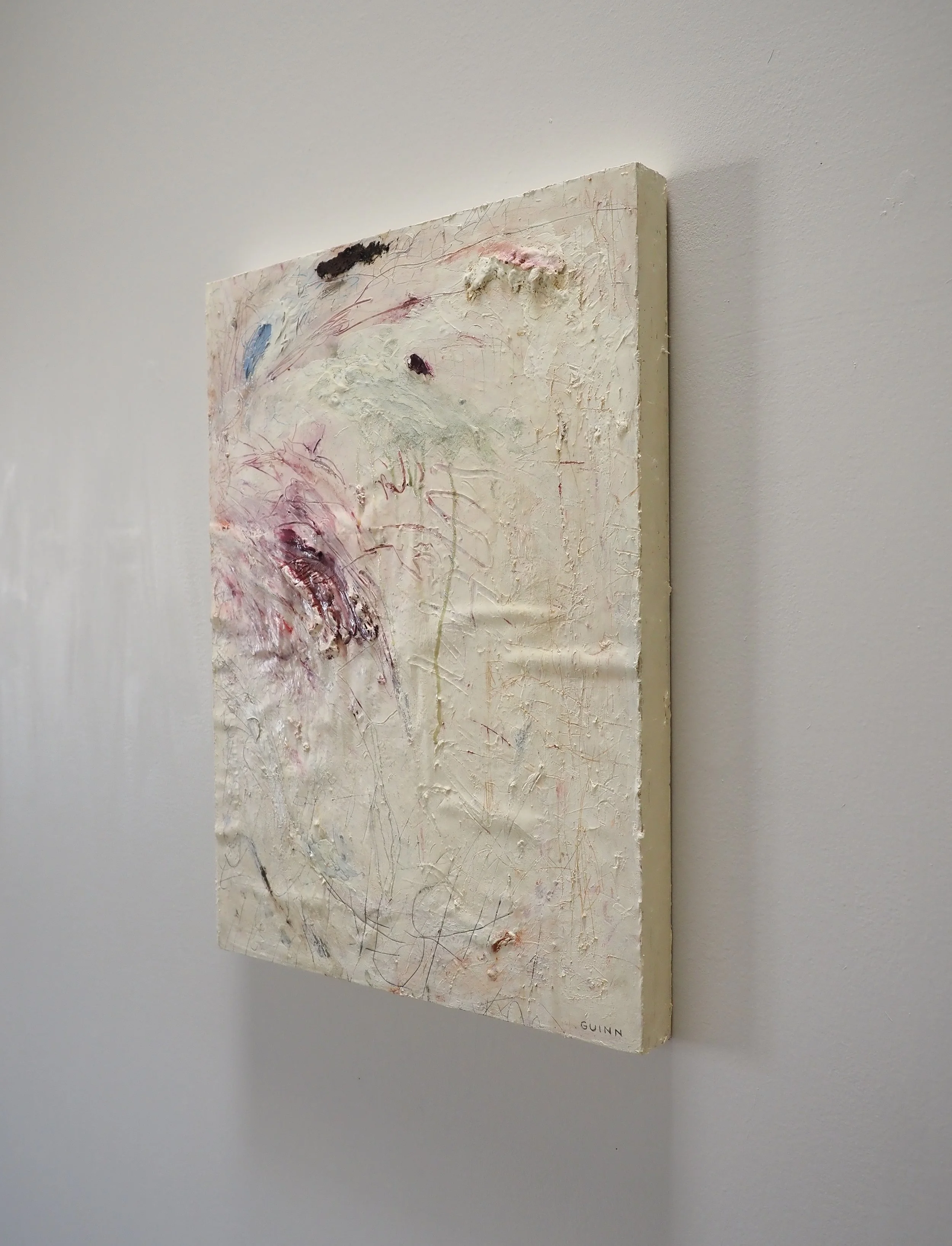 Acrylic, leather paint, pastel, pencil, soil, wax on paper applied to wood